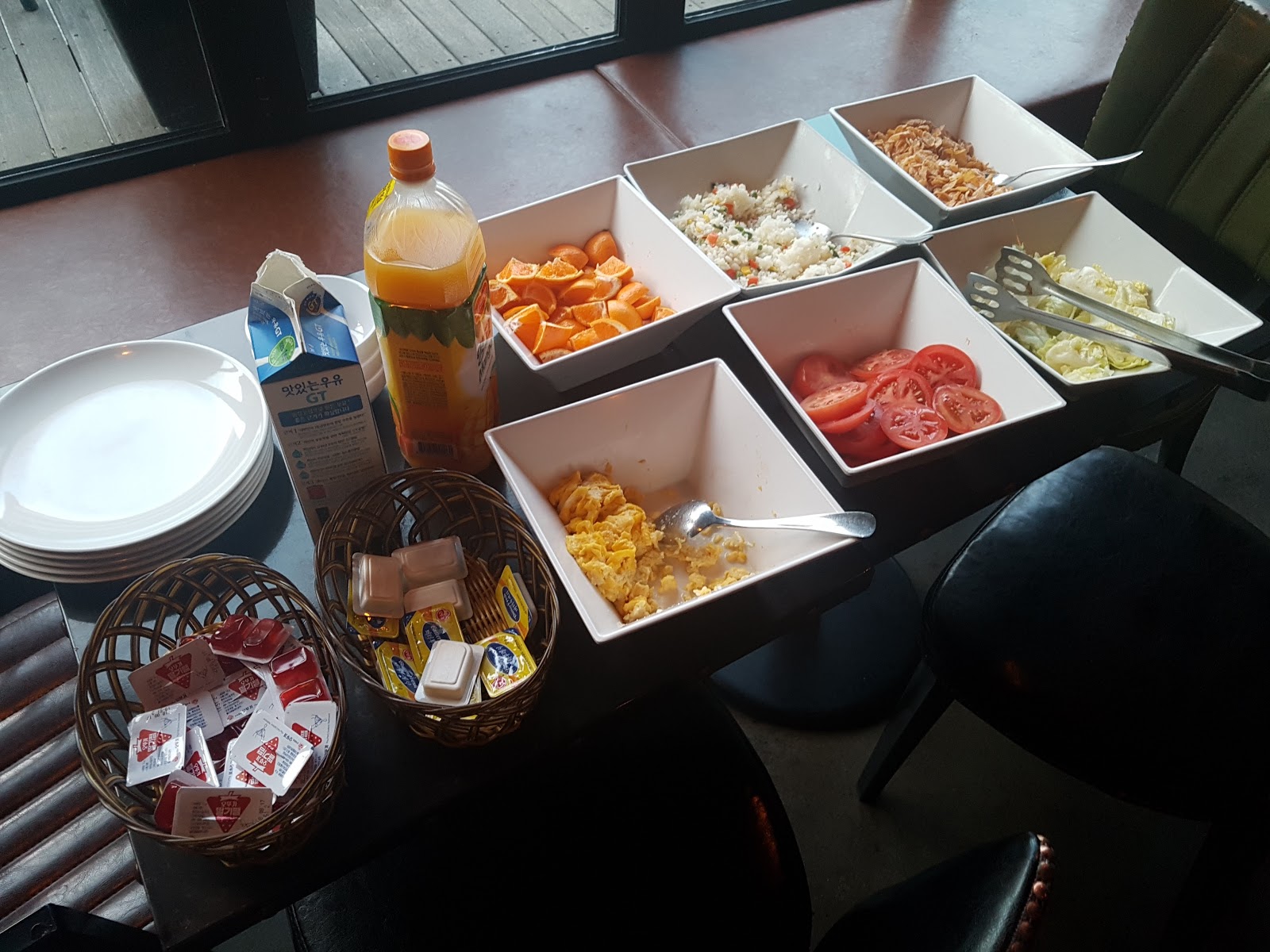 라운지 바를 임시적으로 사용하는 느낌이에요. 분위기가 어두침침해서 사진이 안나오더라구요. 정말 배고파서 밥을 드시는 분을 위한 조식이에요. 분위기나 기분을 내기 위한다면 다른 호텔 조식을 추천합니다.