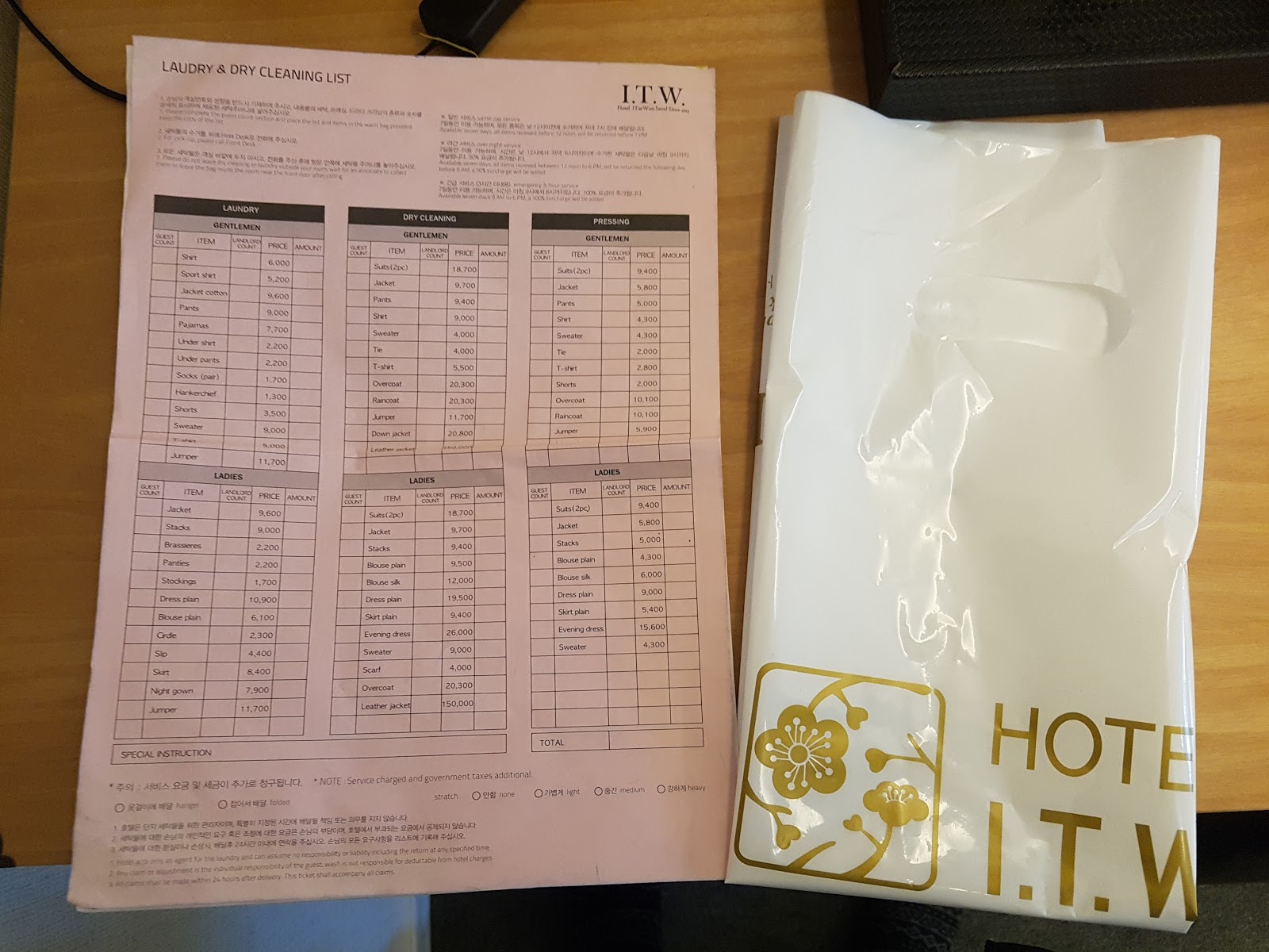 작은 호텔인데 런드리 서비스도 있답니다. 비닐 백도 런드리 용입니다.